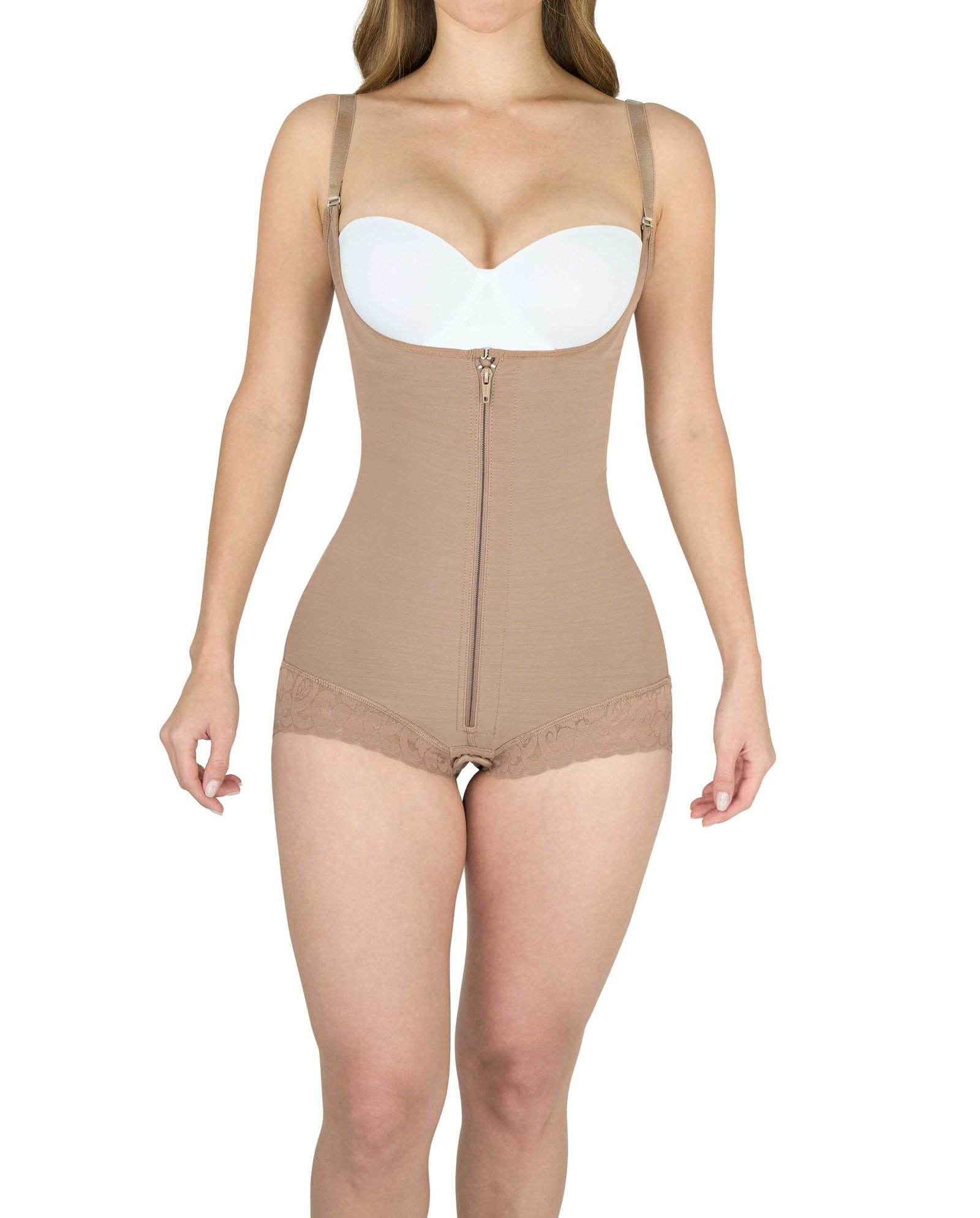 Comfortable shorts and panties with firm compression designed to lift hips and shape thighs with adjustable closures and anti-slip lace.